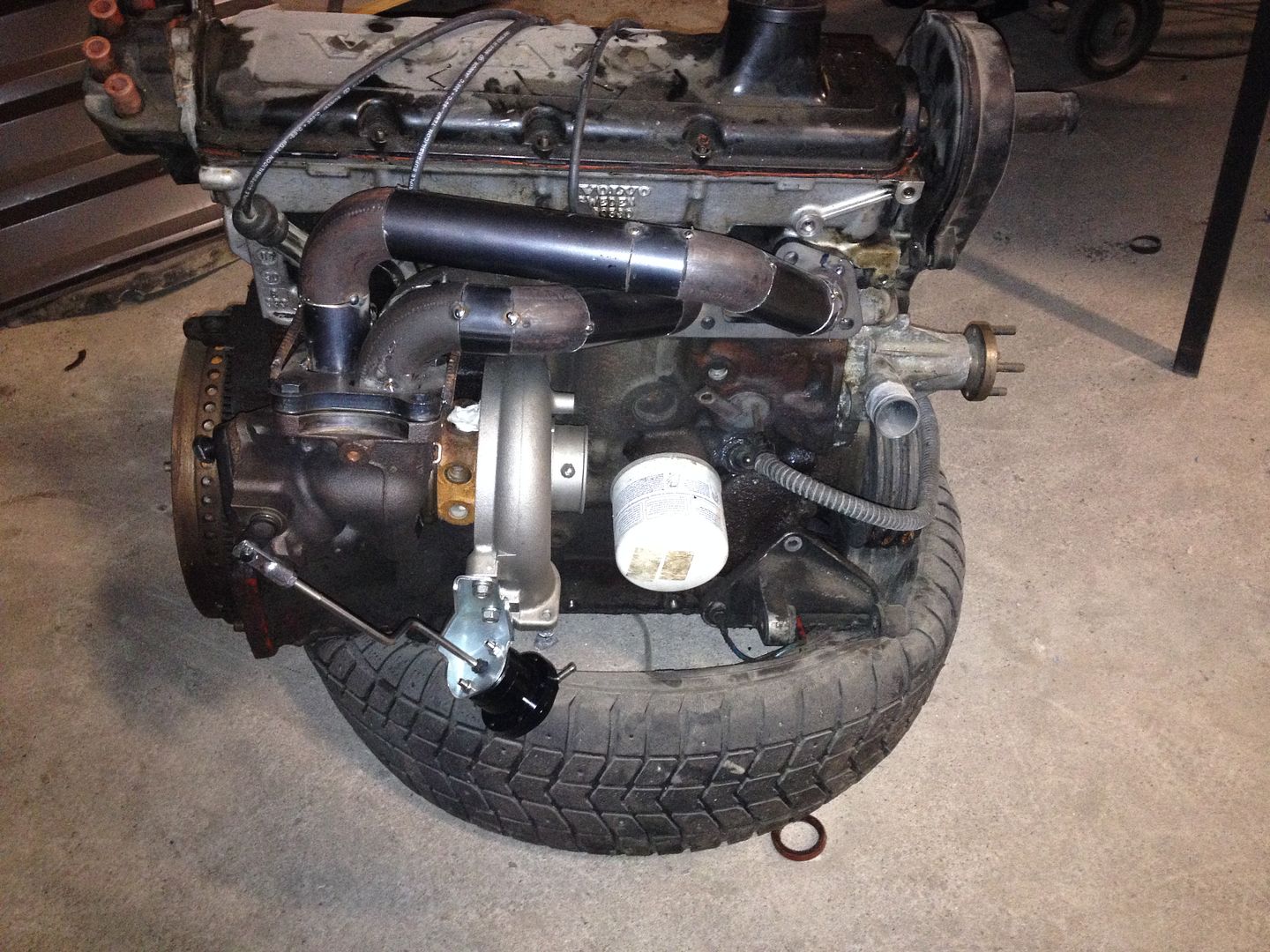 Ei oikeen tuo volvon siirtojalka käy kun tulee downpipen tielle.